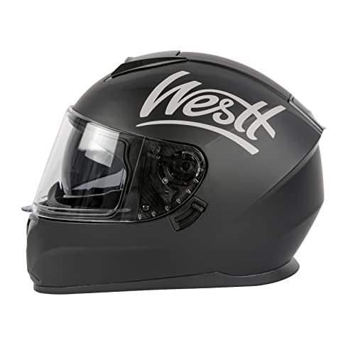 Westt Storm X casco integrale moto I casco moto nero opaco I casco moto resistente agli urti I casco integrale uomo e donna I casco per ciclomotore I certificato ECE | Taglia S