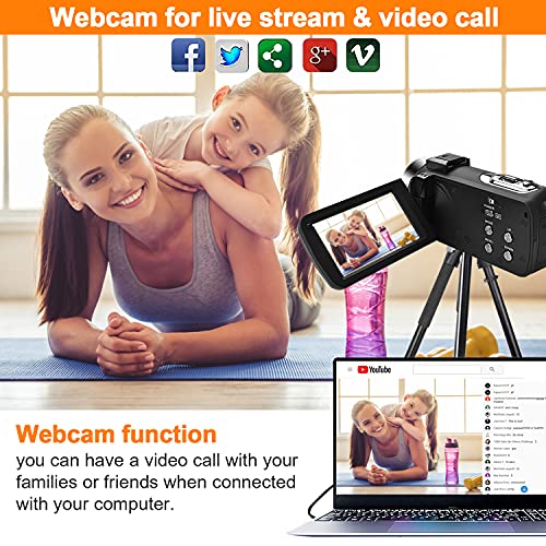 Grande spazio di archiviazione fino a 32 GB - Questa videocamera può supportare la scheda SD esterna fino a 32 GB e la scheda SD è esclusa nella confezione. Supporta un treppiede standard da 1/4" e una scheda SD (max 32 GB, ma non inclusa) che deve essere acquistata separatamente. Supporta il telecomando che è anche possibile gestire facilmente tutte le impostazioni della fotocamera attraverso il telecomando, senza bisogno di camminare avanti e indietro verso la fotocamera.