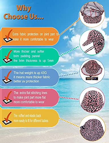 WeVSwe Protezione Solare per Bebè Cappello da Sole Cappuccio con Patta Protezione per Il Collo Sottogola Regolabile Cappello da Spiaggia Traspirante Leopardo Rosa 0-6 Mesi