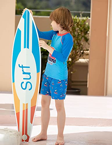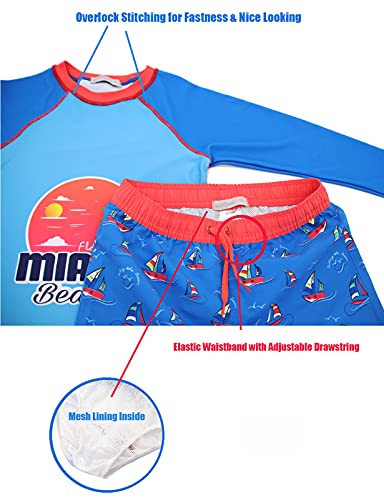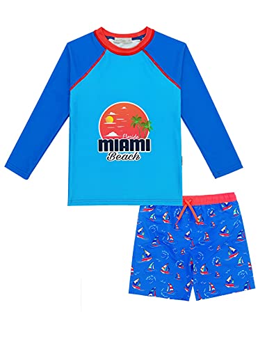 WeVSwe Ragazzi 2 Pezzi UPF 50+ Costume da Bagno con Maniche Lunghe Rash Guard Camicia da Sole e Stampa Miami Sunshine Boardshorts Costumi da Bagno da Spiaggia 6 Anni