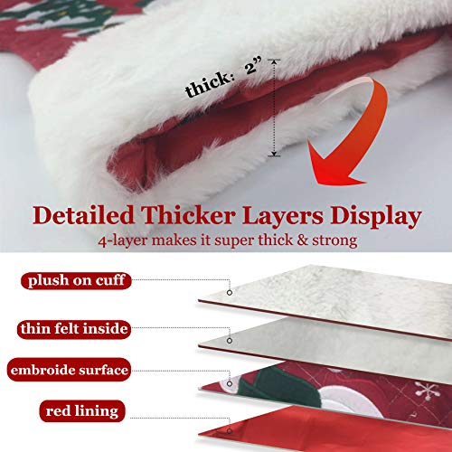 3. Materiale di alta qualità: le calze di Natale sono realizzate in feltro morbido e sicuro. La calza di Natale ha anche un rivestimento interno, è molto liscia e rende facile inserire e togliere i regali al suo interno. Il morbido panno in doppio feltro rende l'intera calza forte e durevole. Le cuciture sottili rendono le calze di Natale più strutturate.