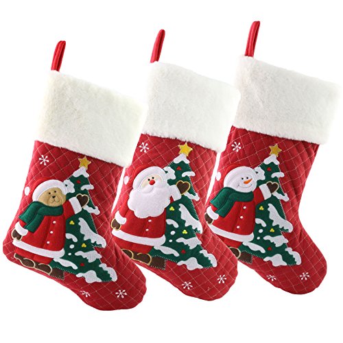 Wewill, Set di 3 calze natalizie tradizionali con Babbo Natale, renna e pupazzo di neve Stile 3