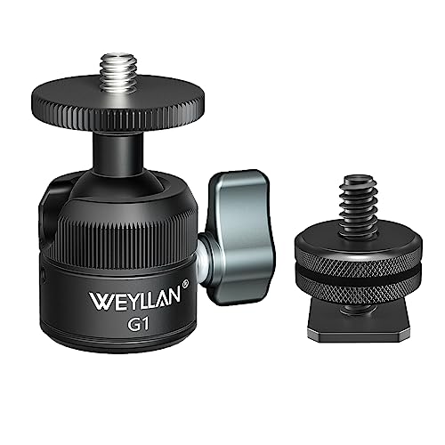 WEYLLAN Testa a Sfera, 28mm Ball Head Metallo Testa Treppiede Supporto 360 Panoramico con Adattatore Hotshoe da 1/4'' per Fotocamere, DSLR, Treppiede, Monopiede, Flash, Monitor LCD, Carico di 3KG