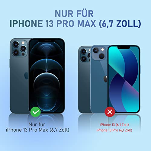 【Protezione schermo perfetto】La custodia per iPhone 13 Pro Max è composta da una pellicola protettiva in vetro temperato sulla parte anteriore e da un pannello composito duro in policarbonato sul retro. La custodia per iPhone 13 Pro Max può massimizzare la protezione dello schermo del telefono da graffi, cadute e altre usura quotidiana.