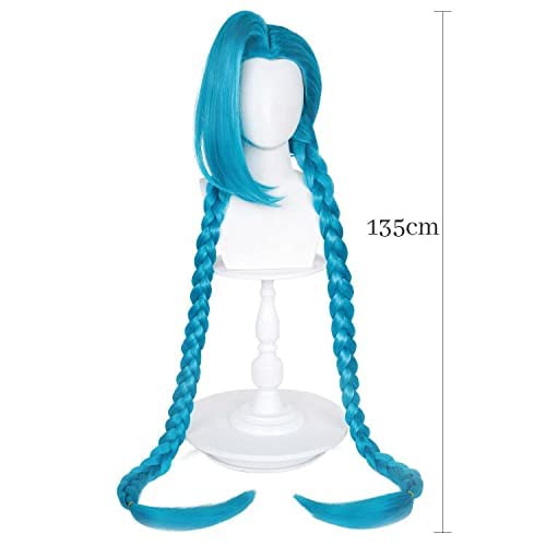 WGHERE UP Parrucca Cosplay Jinx LOL Parrucca Jinx Cosplay Blu, Treccia di Cannone Sciolta, con Trecce Blu, Parrucche Blu con Cappuccio per Parrucca Gratuito (JINX per Adulti) (Jinx per Adulti)