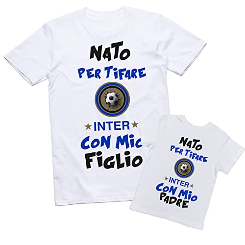 Whale Coppia di T-Shirt Padre Figlio - Nato per tifare Inter con Mio Figlio - Nato per tifare Inter con Mio Padre