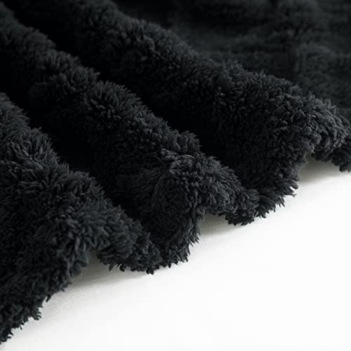 Whale Flotilla Coperta morbida per divano, 130 x 170 cm, calda e morbida coperta in pile, per tutta la stagione, colore nero