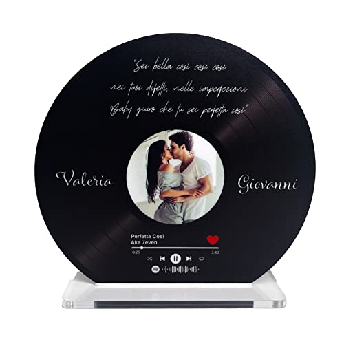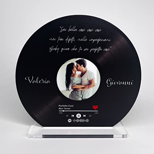 Disco Plexiglass Personalizzato con Foto Nomi Testo Canzone Codice Spotify della vostra canzone, in modo da poter scansionare il codice per ascoltare la colonna sonora del vostro amore. il disco NON riproduce musica, devi scansionare il codice sulla tua app Spotify. Dimensione 17 CM
