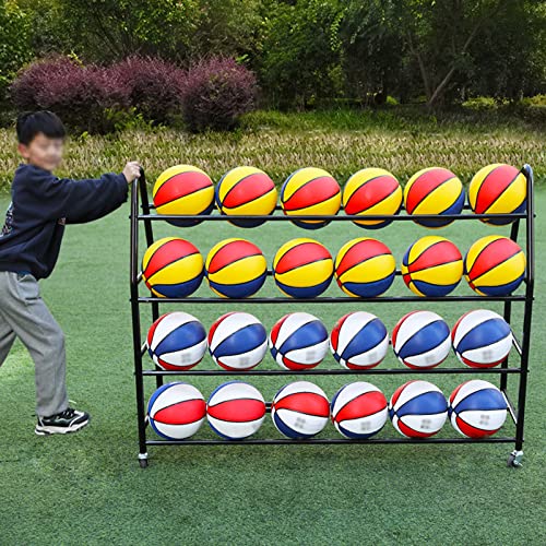 Whalebee Scaffale di Stoccaggio della Palla Robusto Palla Stand in Metallo, Quattro Livelli Pallone da Pallacanestro Grandes capacità Portapalloni da Calcio, Ball Storage Rack with Wheels