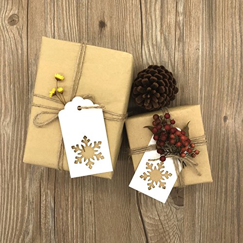 Whaline 100 Pezzi Etichette di Carta, Etichette Regalo Kraft Etichette a forma di Fiocco di Neve, con Spago da 30 metri per Matrimonio Valentine's Day e Decorazioni DIY per Arti e Mestieri (Bianco)