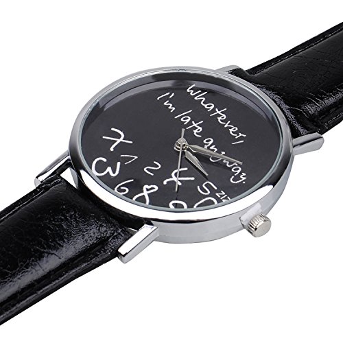 Whatever, I'm late anyway" Unisex Donna Uomo Pelle Sintetica Straps Analogico Digitale Quartz Orologi da polso Wrist Watch Nero 2