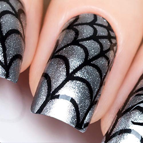 Whats Up Nails - Spider Web Vinyl Stencils for Halloween Nail Art Design (1 Sheet, 12 Stencils)
