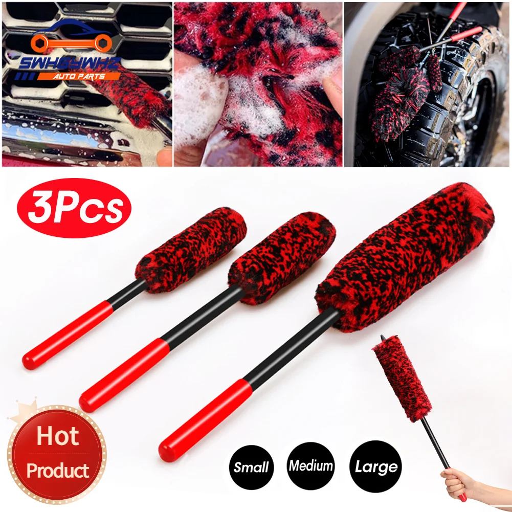 3pcs Auto Car Wheel Hub Cleaning Brush Flexible Long Handle Premium Wool Car Rim Brushes Soft Fiber Car Tire Cleaning Brush