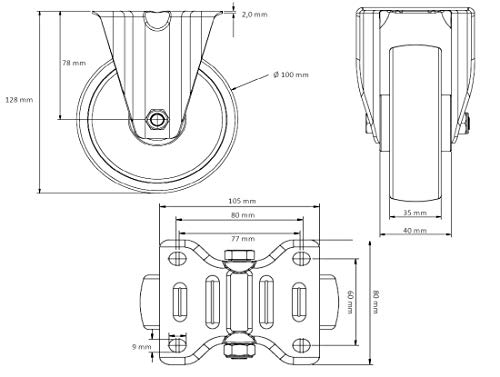 Blue Wheels capron rotolo 100 mm ruote con cuscinetto in gomma