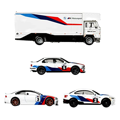 Hot Wheels HCR52 - Set di display Premium Collect con 3 auto Die-Cast in scala 1:64 e 1 veicolo di trasporto di squadra, oggetti da collezione, 2 set in assortimento per collezionisti di tutte le età