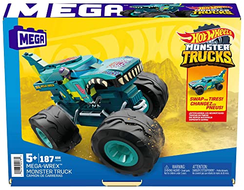 MEGA Hot Wheels - Wrex Monster Truck Assortimento, set da costruzione da 187 pezzi con personaggio snodato, Giocattolo per Bambini 5+ Anni, HDJ95