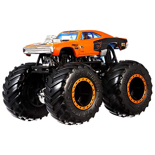 Include 2 auto Hot Wheels Monster Truck, 1 ruota collezionabile e caratteristiche complete, che includono il nome, il tipo di truck e la forza
