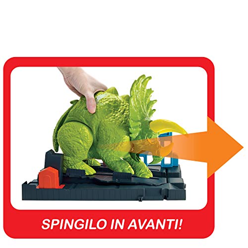 Hot Wheels City Playset Pista Attacco del Triceratopo con Lanciatore e Macchinina, Giocattolo per Bambini di 4 + Anni, GBF97