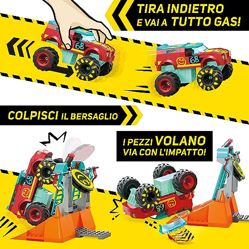 MEGA Hot Wheels - Scontra e Schianta Monster Trucks Percorso Acrobazie Estreme Demo Derby, set da costruire con 151 pezzi e 1 micro action figure inclusa, giocattolo per bambini, 5+ anni, HNG53