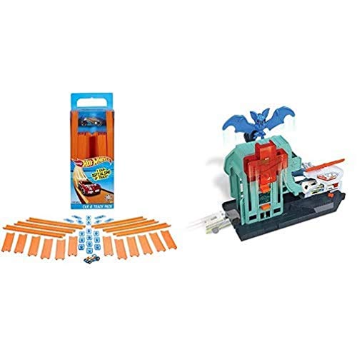 Hot Wheels- Track Builder Confezione da 15 Rettilinei e Veicolo Incluso, Multicolore, BHT77 + Creature Mostruose Playset Pipistrello + GCF92 Valigetta Pista Lancia