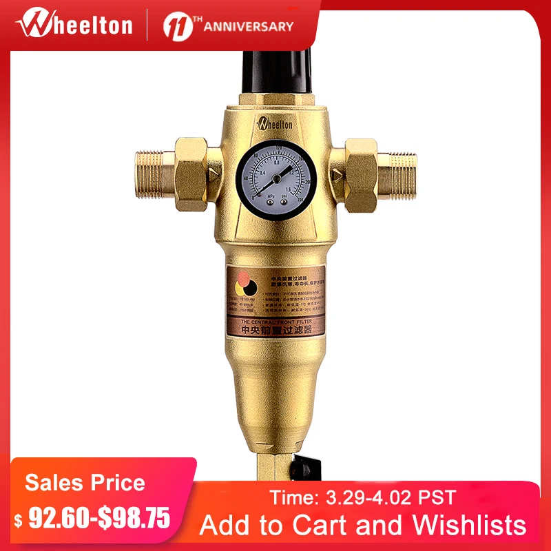 WHEELTON 59 Brass Water Filter First Step of Water Purifier System For Low or High Temperature 40-60 Micron Stainless Steel Mesh