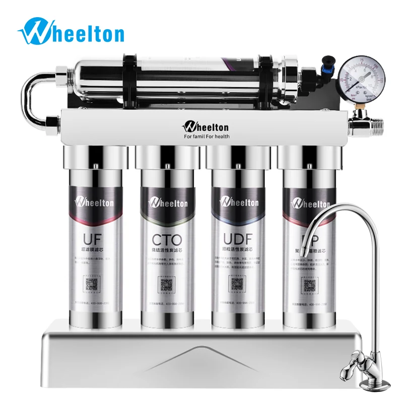 WHEELTON Household Kitchen Under Sink Ultrafiltration Large Flow Water Purifier with Tap Stainless Steel Direct Drink