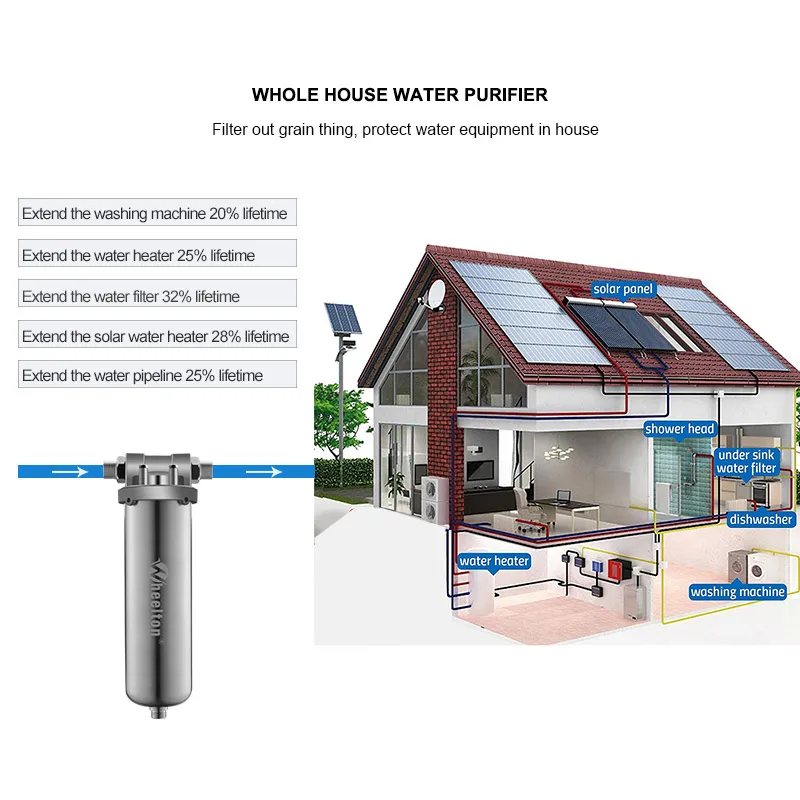 Wheelton SUS304 Wholehouse Pre Water Filter Filter Sediment Rust Protect Home Water 8000L/H Enough for Coffee Shop Freeshipping