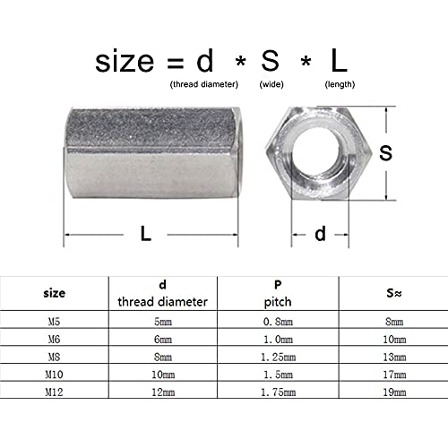 WHHHuan 1/2/5pcs M5 M6 M8 M10 M12 A2-70 304 Acciaio inossidabile DIN6334 Esagonale Estendere Lungo Asta Giunto Dado Connettore Dado Tubolare (Dimensioni: 1pc M10x17x22mm)