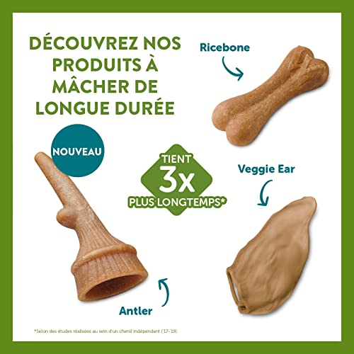 WHIMZEES Antler, snack da masticare a forma di corna con effetto calmante per cani di taglia media (12-18 kg), puramente naturale, senza cereali, 12 pezzi