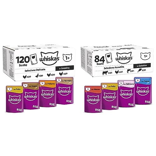 Whiskas Selezione Delicata in Gelatina 1+, Cibo Umido per Gatti, Pacco Formato Scorta & Selezione Assortita in Gelatina 1+, Cibo Umido per Gatti, Pacco Formato Scorta
