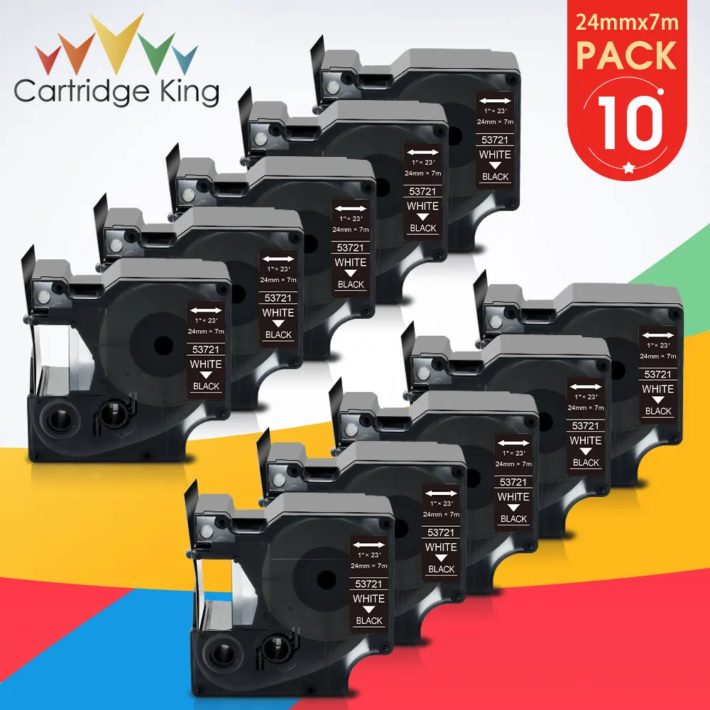 10PK White on Black 53721 24mm Ribbon Tape for DYMO D1 Label Compatible For Dymo LabelWriter 450 Duo LabelManager Label Maker