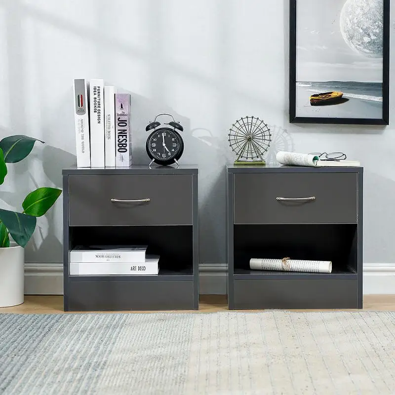 2pcs / Set Pure White & Black Minimalist Modern Nightstands Bedroom Beside Table Coffe Table Bedroom Furniture Nightstand HWC