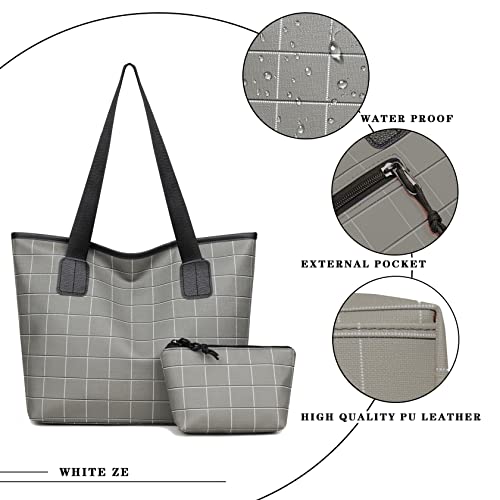 【Borse da donna di grande capacità】 L'interno della borsa è realizzato in morbido cotone poliestere e l'esterno è in pelle PU con motivo a griglia quadrata. La borsa ha 1 tasca esterna con zip, 1 tasca interna con zip, 2 tasche filettate e una chiusura superiore con zip e viene fornita con una piccola borsa, quindi ogni cosa ha il suo posto.