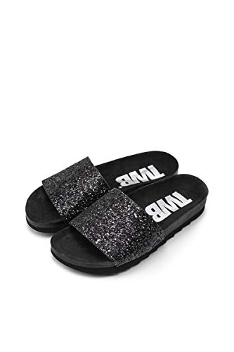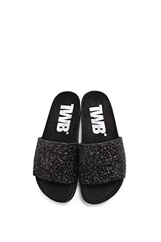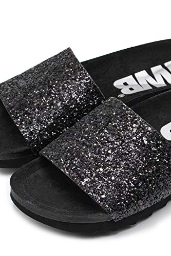 The White Brand Bio Glitter, Sandali Punta Aperta Donna, Nero Black Black, 40 EU
