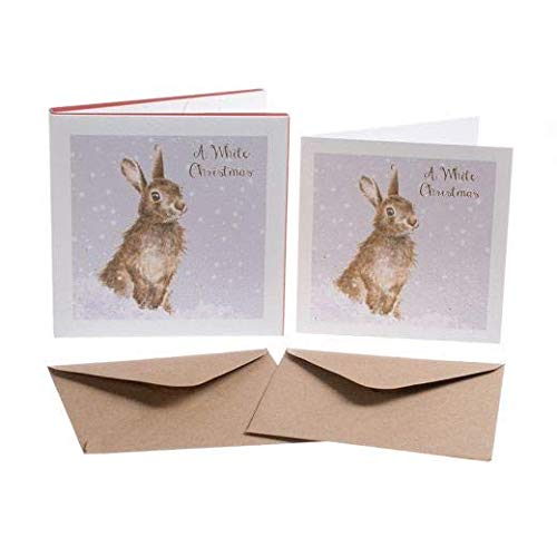 White Christmas - Rabbit Christmas Card Box Set - 8 Luxury Gold Foiled Cards & Envelopes - Wrendale Designs