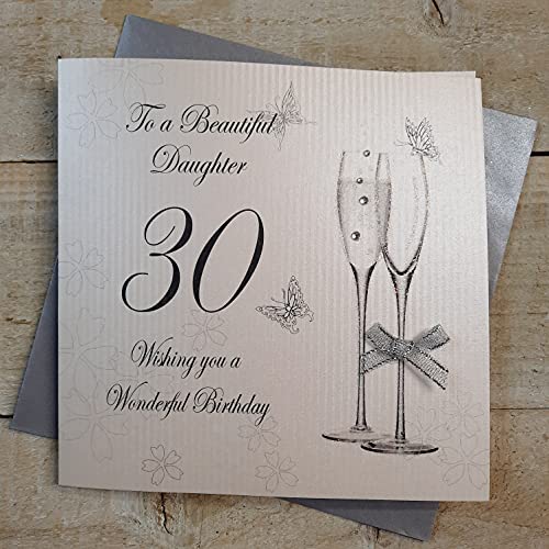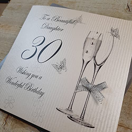 WHITE COTTON CARDS BD10-30 Biglietto di Auguri per 30esimo Compleanno To a Beautiful Daughter 30 Wishing You a Wonderful Birthday, Realizzato a Mano (Lingua Inglese)