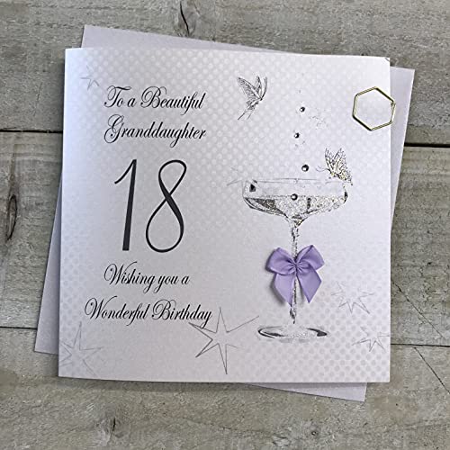 WHITE COTTON CARDS - Biglietto d'auguri Realizzato a Mano, per 18° Compleanno della Nipote da Parte dei Nonni, Colore: Bianco [Lingua Inglese]