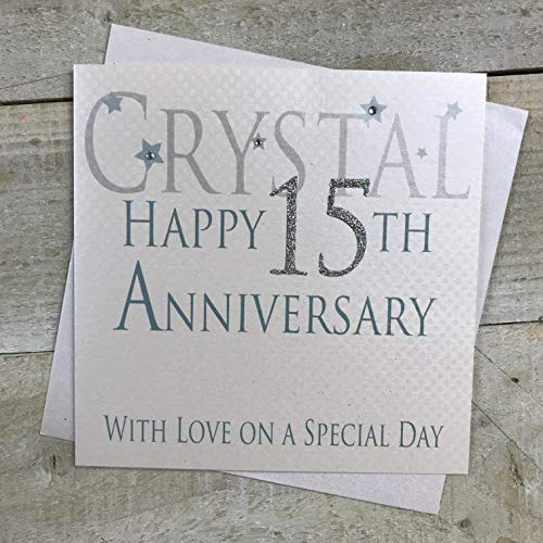 WHITE COTTON CARDS "Crystal Happy 15TH Anniversary with Love ON a Special Day Handmade Card