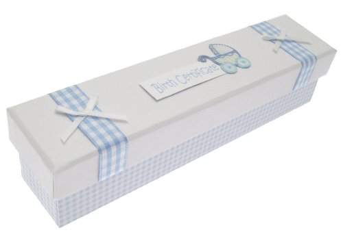 White Cotton Cards - Scatola per certificato di nascita neonato, con disegno carrozzina