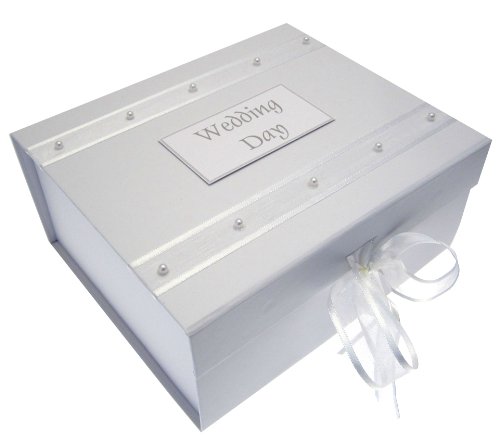 White Cotton Cards - Scatola per souvenir del matrimonio decorata con perle, formato A5