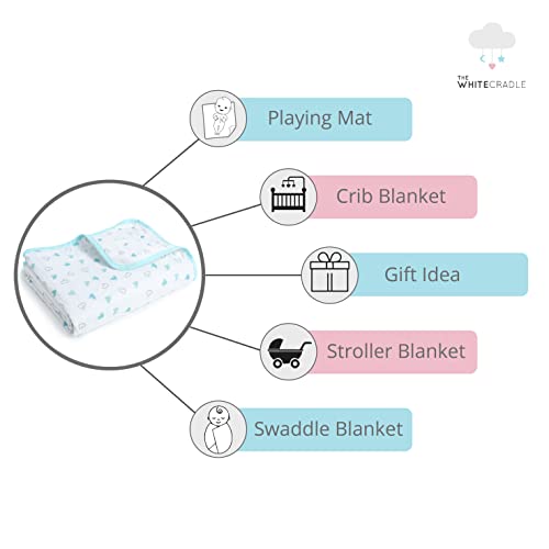 The White Cradle Cotone organico più morbida Coperta/trapunta per lettino/culla, con 3 strati di tessuto morbido, disegni reversibili, 2 lati Mussola stampata Mussola, 95 x 120 cm - blue Hearts