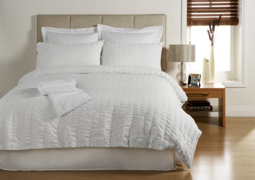 WHITE DOUBLE Bed Size SEERSUCKER Print, Duvet Cover and Pillow Cases Bedding Set by Viceroybedding