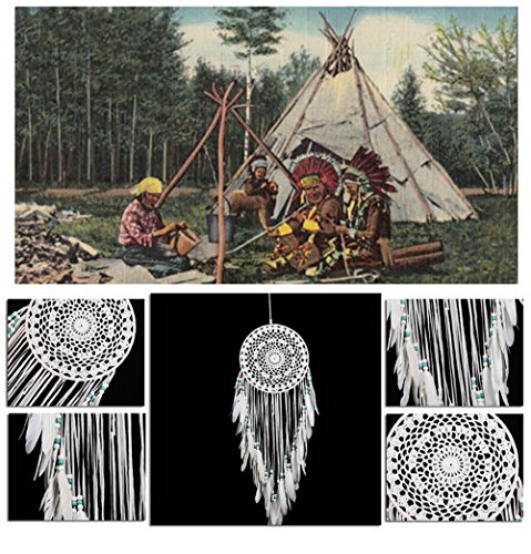 White Dream Catcher Handmade circolare netto con piume Wall Hanging Decoration Decor Ornament Craft Gift New