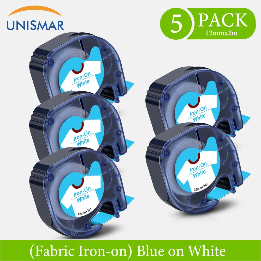 5PK Blue on White Fabric Iron on Clothes Tape for DYMO LT Label Tapes 18775 18773 18772 12mm*2m for Letratag QX50 LT-100T 100H