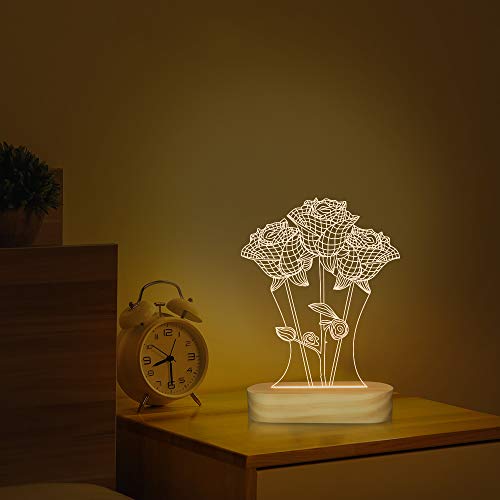 Rose Lamp,Warm White LED Flower 3D Illusion Night Light,Romantic Gifts for Girlfriend,Cool Home Decor