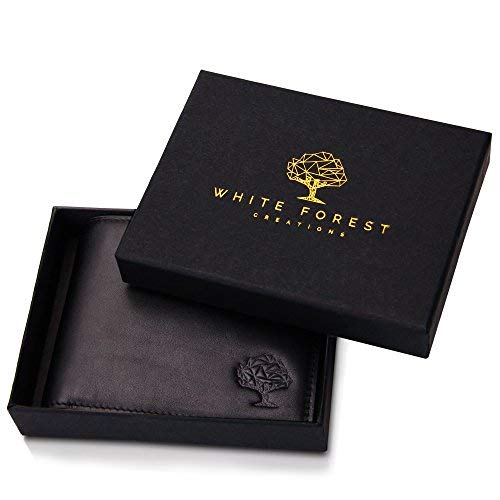 White Forest Creations - Autentica protezione per portafoglio uomo, RFID compatto e sottile. Regalo ideale Modello europeo
