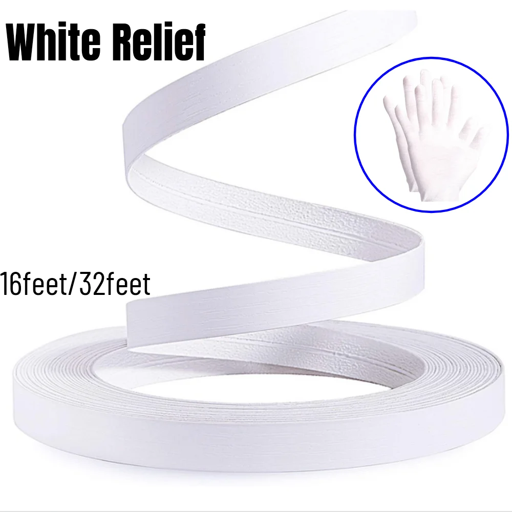 White Relief Wood Veneer Edge Banding, Preglued Flexible Wood Tape Iron on with Hot Melt for Cabinet Furniture Restoration