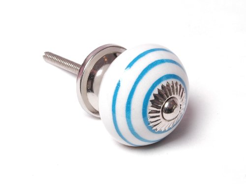 BLUE and white stripe striped ceramic KNOB handle pull for furniture (drawers, cupboard doors etc) by Vintage Pink