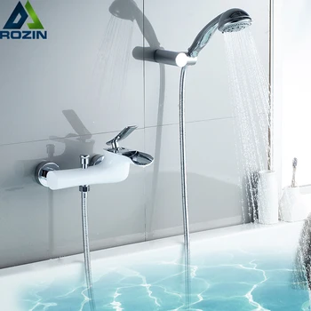 White Waterfall Spout Bathtub Faucet Wall Mounted Multifunction Handshower Bath Shower Set One Handle Bath Tub Mixer Faucet Tap