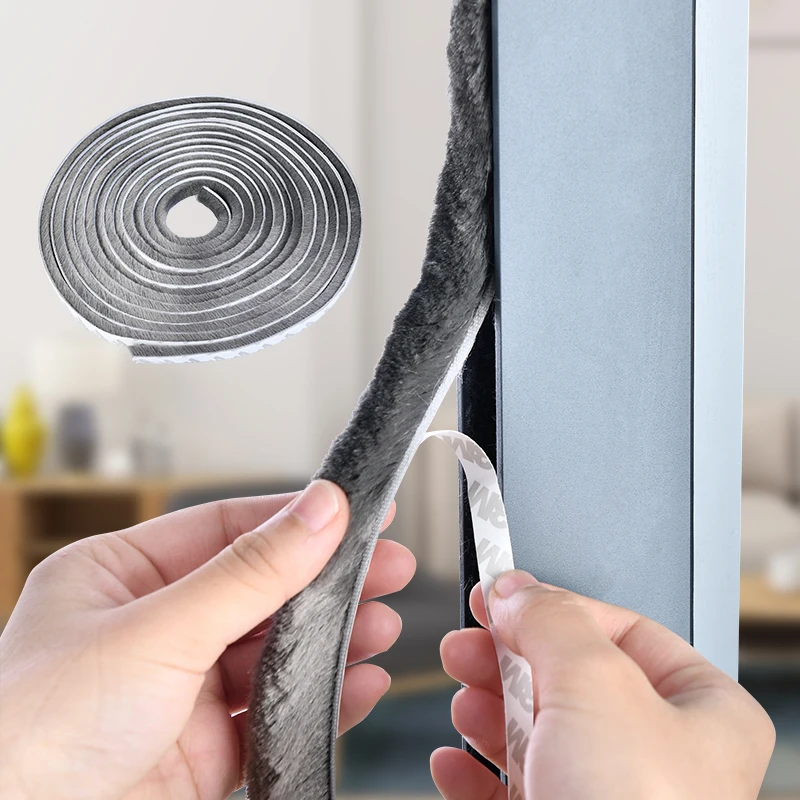 10M White/Grey Brush Strip Self Adhesive Door Window Sealing Strip Home Door Window Sound Insulation Wind-proof Strip Gasket